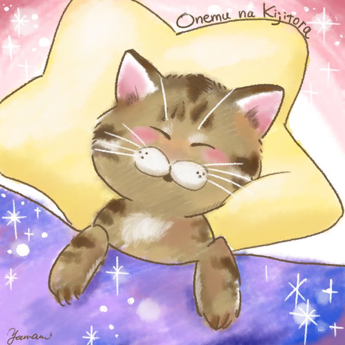 キジトラ猫ちゃんも描きました。おやすみなさい★ #イラスト好きと繋がりたい #絵描きさんと繋がりたい #猫好きさんと繋がりたい #365日毎日投稿チャレンジ #イラスト #落書き #絵本を作りたい #デジタルイラスト