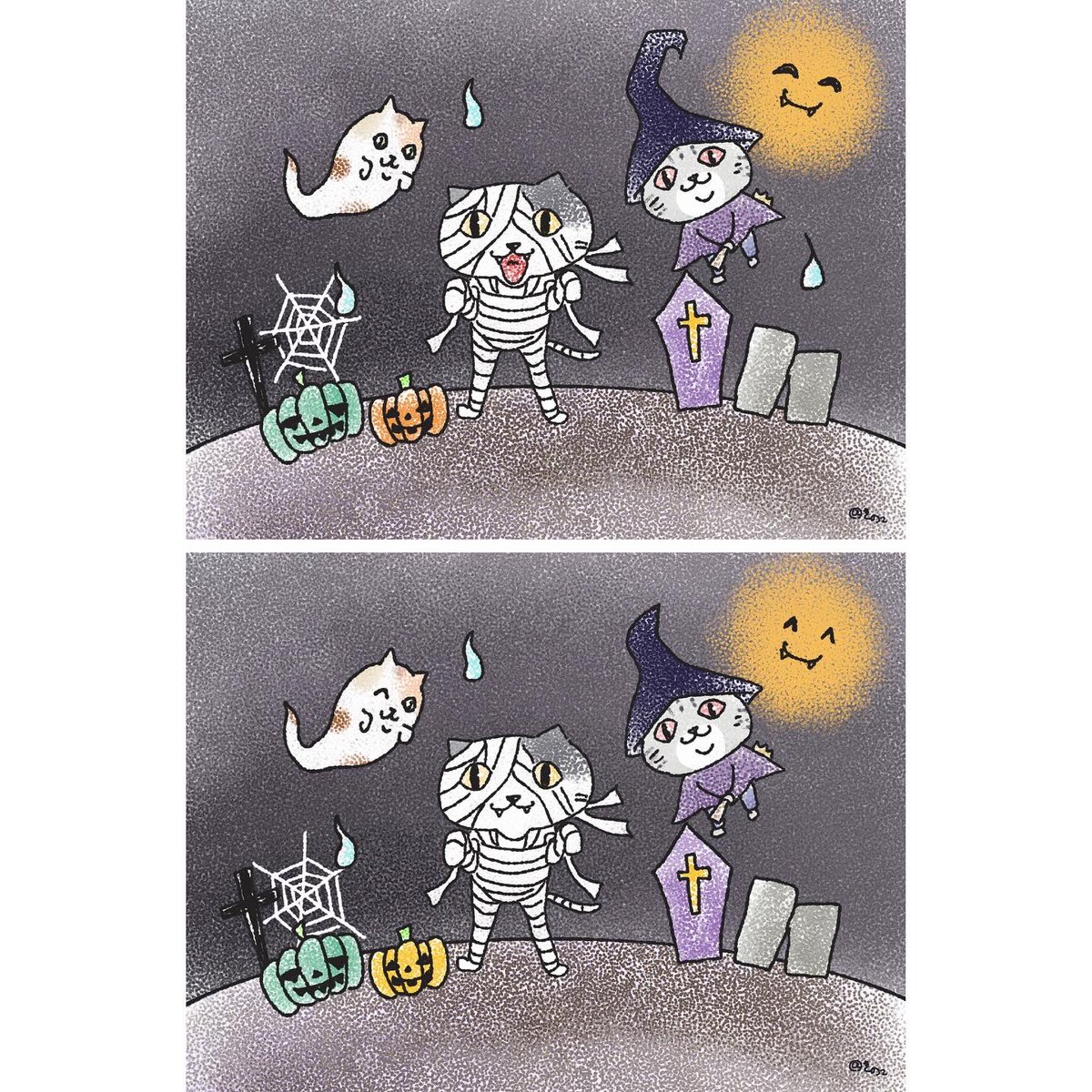 ハロウィン用の間違い探しです👻 間違いは全部で7個あります。 ぜひ見つけてください🤩 #illust #illustration #cat #catillustration #イラスト #ネコ #ねこ #猫 #猫イラスト #絵本風イラスト #ゆる絵 #ゆるいイラスト #間違い探し #間違い探しイラスト #halloween #ハロウィン #ハロウィンイラスト