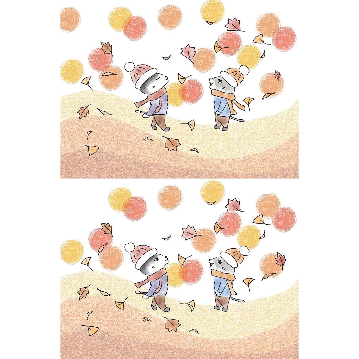 秋から冬に変わる間違い探しイラスト。 間違いは全部で7つ! ぜひ見つけてください✨ #illust #illustration #cat #catillustration #イラスト #ネコ #ねこ #猫 #猫イラスト #ねこいらすと #ネコイラスト #絵本風イラスト #ゆる絵 #ゆるいイラスト #イラストレーションアート #イラストレーター志望