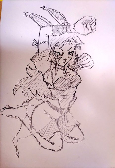 今月最初の ケモミミちゃん 何時も使ってる紙を忘れてしまって 急遽コンビニノート 引っかかって一寸描きにくいな (>_<)ゞ #花maruの絵 #アナログ絵 #オリジナルキャラクター #ケモミミ #絵柄が好みって人がいたらいいなぁ #絵柄から推測する描き手の血液型