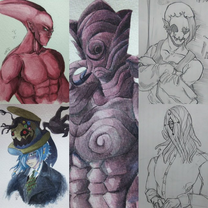 #絵柄が好みって人と相互になりたい #秋の創作クラスタフォロー祭り 過去画像使い回しで失礼💦 版権も扱いますが創作をメインとしています!アナログで落書きが多め、着彩は水彩です🖌️ 人外と筋肉率が高いです👾💪が、ゆるふわ系を描くときもあります🎠 ♻️か❤️で気になった方をお迎えさせて頂きます!