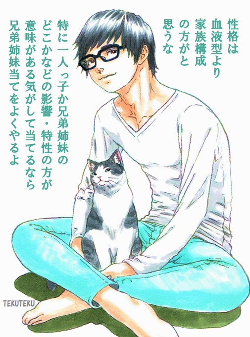 #絵柄や作風から推測する描き手の血液型 O型だけどね😊 ちなみに猫は8割がA型にゃ🐱 #猫好き #illustration #オリジナルイラスト ちなみに兄弟姉妹当てもほぼ当たらないけど🤭ただそれは皆社会生活では基本的に素を出さないのもあるかと😆🐱🎶