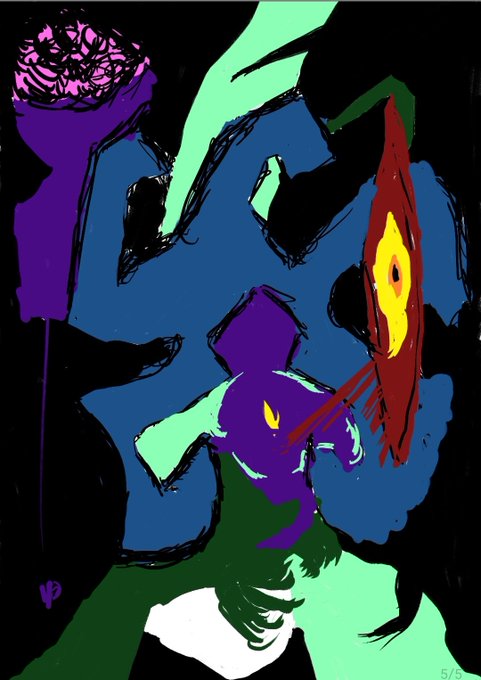 20「水雷帝」2023/3/20 #絵画 #イラスト #水彩画 #油絵 #絵画初心者 #抽象画 #絵 #アート #絵描きさんと繫がりたい #絵画好きな人と繋がりたい #直観で描いてみた #この世の色 #少なすぎじゃないか