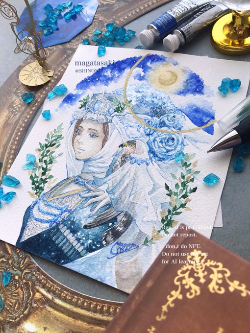 孤高の青きコランダム💎 大好きな青で大変お気に入りに描けました…!キラキラもあちこちに。来週末の展示会に参加致します。また作品紹介をしますので、見ていただけたら嬉しいです✨ #誕生石のヴェールを纏って #透明水彩 #絵画
