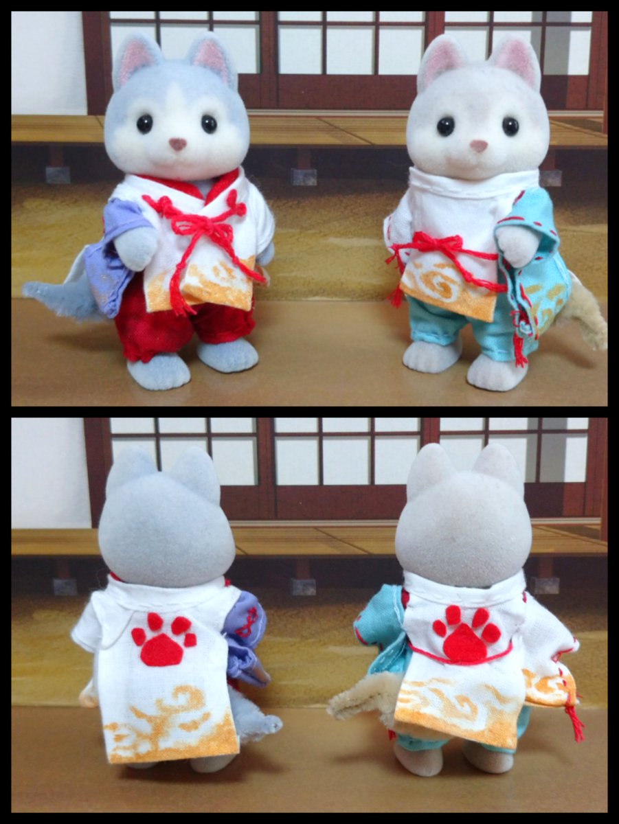 改めて再掲~~! 絵馬コンのダンサーさんのお洋服が素敵なので作りました🐾細かい所は気にしないでください💦 本日オリックス劇場に連れていきます! 💜🐺🐺💙 #SoundHorizon #絵馬に願ひを #大神再臨祭0427 #コスバニア
