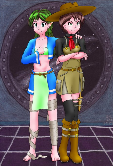 セレスティアとジェイド (fanart/gift) #コスプレ #怒り顔 #ふんどし #ボレロ #ジャンパースカート #絶対領域 #サロペットスカート #ロングブーツ pixiv.net/artworks/10359…