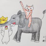 おはようございます!! #絶滅危惧種の日 アジアゾウさんと遊んだよ!! 楽しかったなぁ〜!! 今日も素適な水曜日を〜🤗 #絵描きさんと繋がりたい #みんなで楽しむTwitter展覧会 #イラスト #油性ペン #マッキー