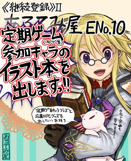 👏定期更新ゲームオンリー《継続登録》Ⅱ、開催おめでとうございます! Eno.10 「あるてみ屋」で参加しております!!新刊かつ初の物理本でもある自キャライラスト本をはじめ、新作グッズや無料配布ペーパーもあります! サークルはこちら keizokutouroku.sakura.ne.jp/02/10_9x5_kekk… #継続登録2