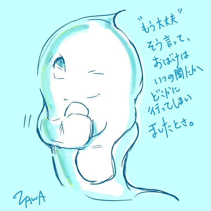 《さよなら、おばけ》 もう安心して、眠れるようなので次の不安で眠れない人のもとへ。 #とみざわイラスト #続編 #朝の筆ならし #イラスト練習 #illustration #croquis #doodleart #goodmorning #夏のイラスト twitter.com/ymmtymmt0901/s…