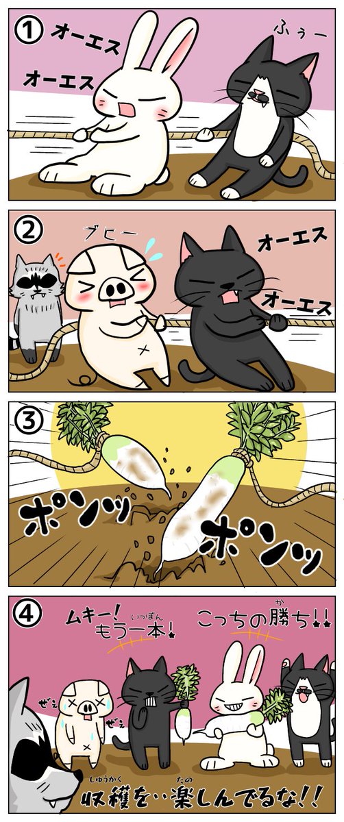 👁️《道化師と陽気な仲間たち》によるパントマイム 🎪🃏😸😺🐶 🦾💪綱引き #道化師と陽気な仲間たち #アトリエの系譜3 #マンガスタイルイラスト #アナログ #モノクローム #ペン画 #オリジナルキャラクター #パントマイム #綱引き #道化師 #猫 #犬 #マイム