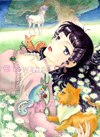 #綺麗なお姉さんならまかせろ (*゚ω゚)ノ 夏の初め頃に導入した新兵器+ちびちび実験してた新技法♪ 5cm角の大きさでも完成度を保つデジタル絵のプリントアウトならではの精密&正確さ、でも背景はアナログの金泥。これぞ #でじにたす♬ #1日一点とにかく描く