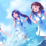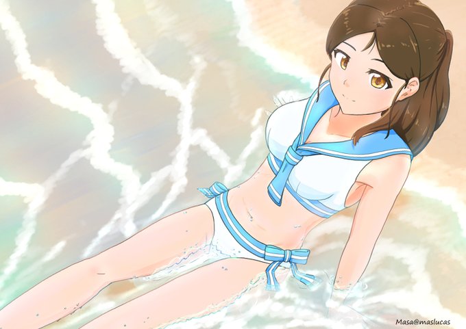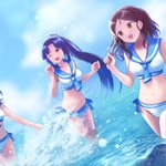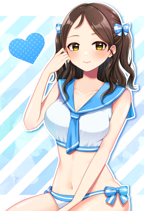 Skeb納品しました! 藤原肇ちゃん、綾瀬穂乃香ちゃん、水野翠ちゃんのユニット「アズールブルー」のイラストです! セーラーミズギのどちらのタイプで描くか迷った結果両方描きました🩱🌊 skeb.jp/@mr080813/work… #Skeb #Commission @skeb_jpより