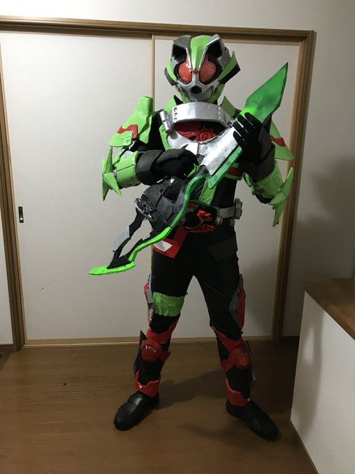 「人が幸せになろうとする権利を奪う資格なんて、誰にもない!」 仮面ライダータイクーン ニンジャブーストフォーム完成しました! 明日のとなコスに出します! #くろだいの造形コーナー #仮面ライダータイクーン #仮面ライダーギーツ #ガワコス #コスプレイヤーさんと繋がりたい #緑のたぬき
