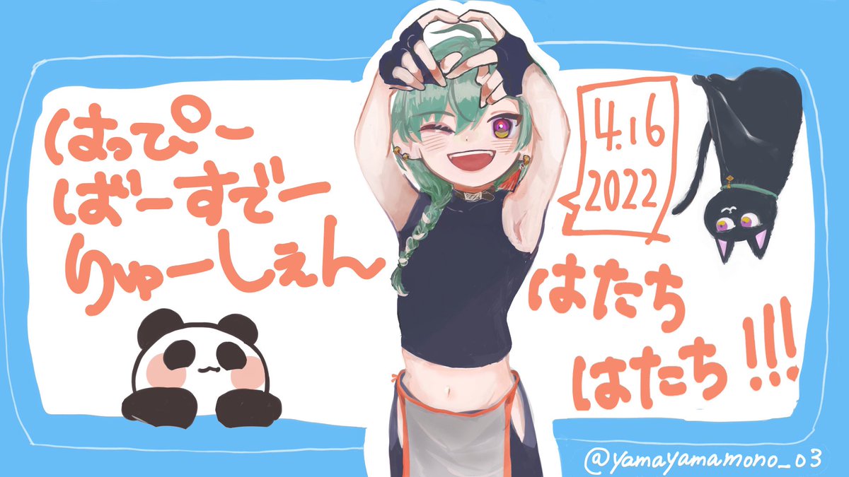 イラストの部とおまえらの声の部に参加させていただきました 企画の立案、制作の皆さん本当にありがとうございました!動画最高でした🐼 改めて、緑仙おめでとう〜! #緑仙はたちになったね #緑仙の誕生日 #緑仙はやく見ろ twitter.com/rysnBD2022/s…