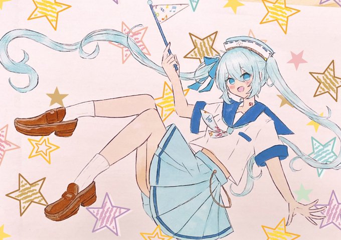 十六夜さん(@IZAYOI_0ekaki )の可愛いミクちゃん線画を塗りました〜♪ #色鉛筆 #コピック #マステ #アイビス 全部使って仕上げてます!! 今までで一番色んな画材を使ったのでぜひいっぱい見ていただきたいです!!🙏💕 #線画お借りしました #絵描きさんと仲良くなりたい #拡散希望