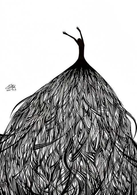 「お先真っ暗な蓮根を覗く人」(2020.4.1制作) 珍しく物語な絵を描きました。 #今日は何の日 #線画の日 #大遅刻 一昨日だったらしい。 #イラスト #絵描きさんと繋がりたい #illustration #漫画 #イラスト好きさんと繋がりたい #する人