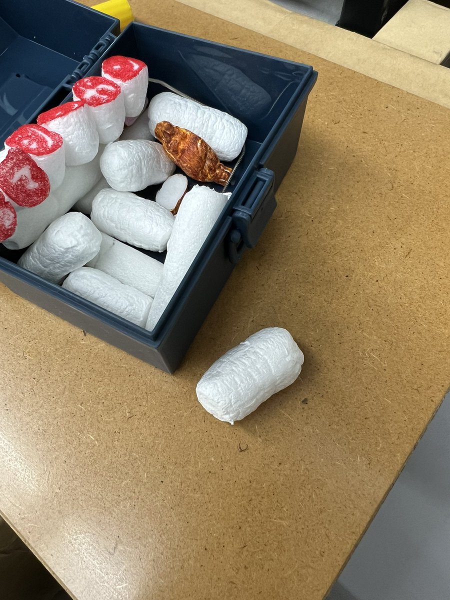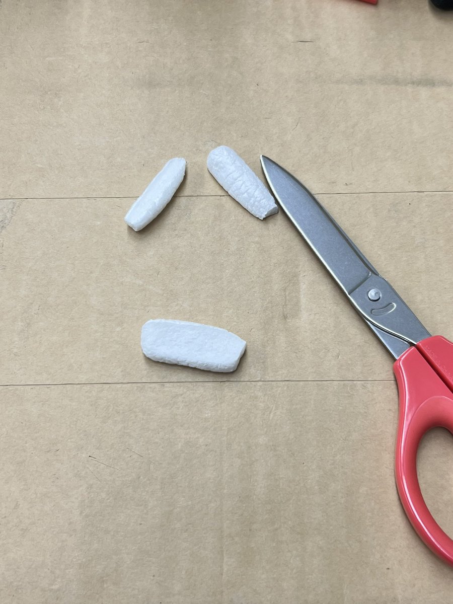 カニカマ以外にもできるんじゃないかって思ってからの緩衝材カール 仕事で疲れて帰ってきてから机の上にある緩衝材カールを食べようてしてイライラしちゃったのも、いい思い出(ノ≧ڡ≦)☆ #緩衝材アート #緩衝材アーティスト