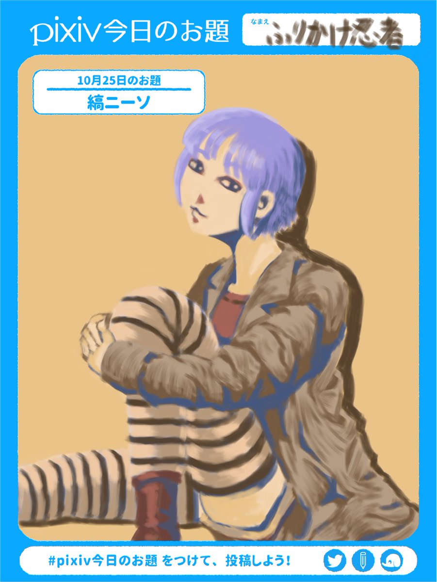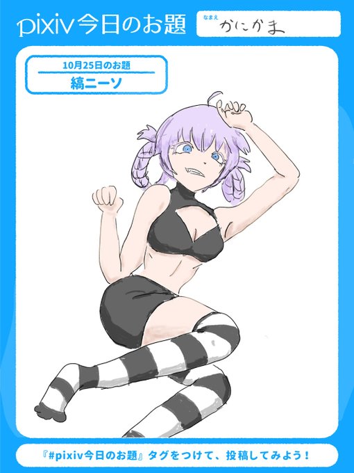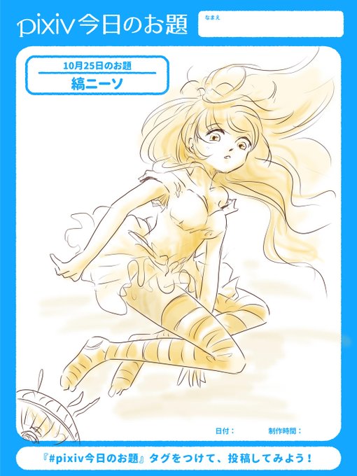 今日のpixivでのお題「縞ニーソ」 「履いてって言われたから履いてみたけど…これって年齢制限あるっちゃないと…」 #ニーソ #縞ニーソ #絵描きさんと繋がりたい #絵柄が好みって人にフォローされたい