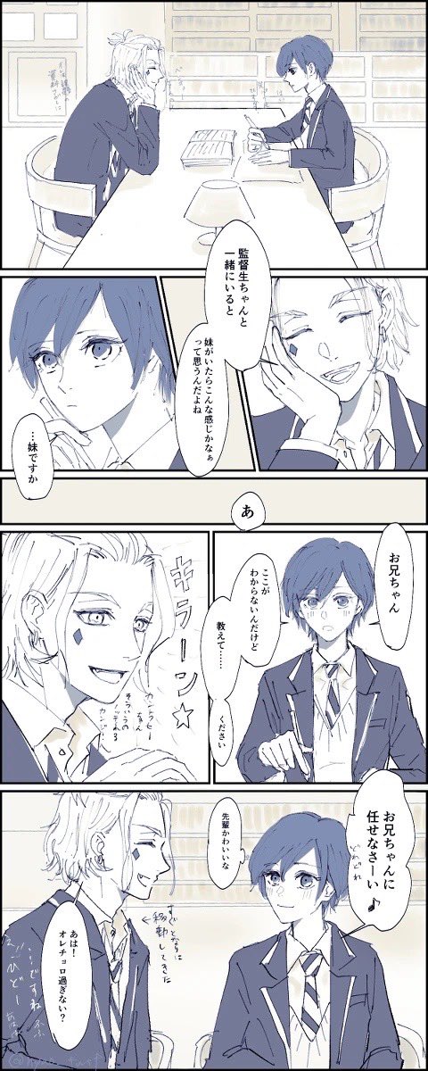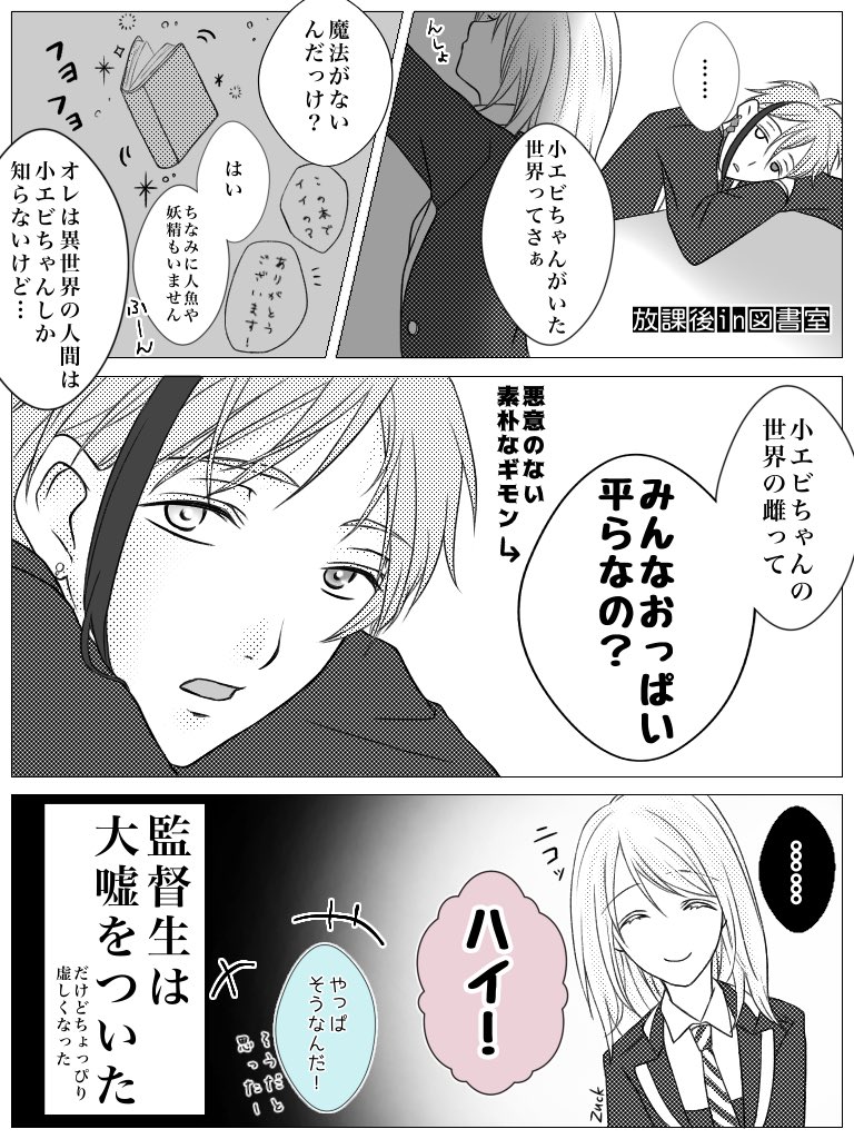 #繋がらなくていいからうちの監受けを見て 素敵なタグ見つけたから便乗✨ 両片想いの天然デュ監と誕生日前にアップしたお祝いを催促するエース! デュ監♀メインにエー監♀も時々描いてます。 支部はまだまとめられてないので、よければメディア欄をご覧ください🙇♀️