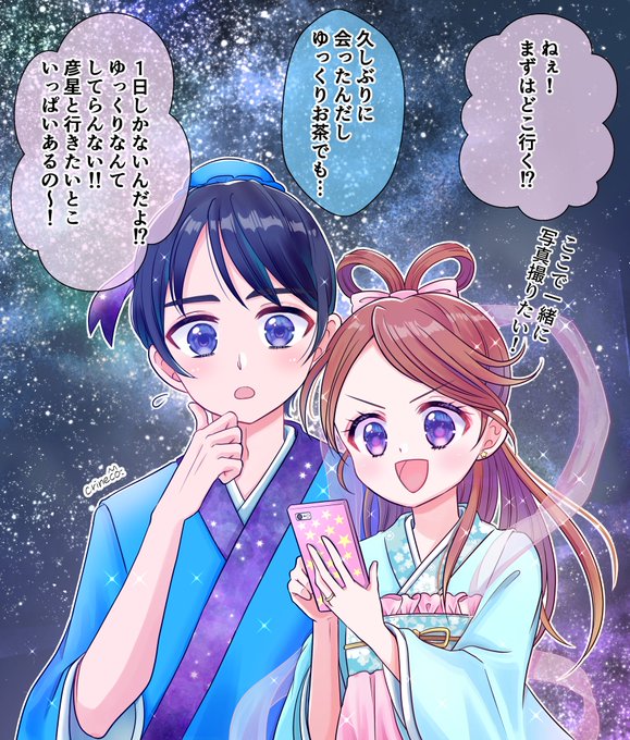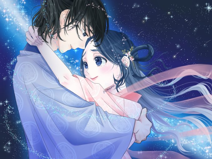 本日は七夕の日ですね!#織姫と彦星 今夜は会えるかな?🌌🎋(1/2) 皆様の願いが叶いますように🌟 #七夕 #今日は何の日 #漫画が読めるハッシュタグ #絵柄が好みっていう人にフォローされたい #TLを星いっぱいの天の川にしよう #イラスト