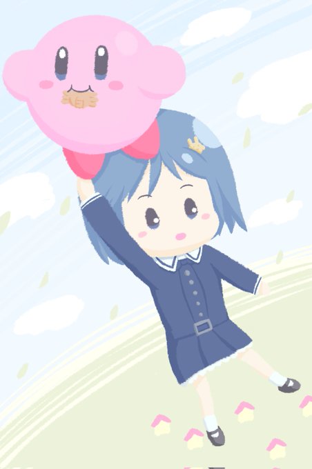 ゆいんごお誕生日おめでとう❗ ピンク色の丸いいきものに奪われたクラブパンを取り戻そうと、ゆいんごは足をつかみました するとどうでしょう、そのいきものはゆいんごにつかまれたまま、空へとたかくたかく登っていきます ~オルタナえほんより〜 #オルガル2 #オルガルイラスト部 #織宮結衣生誕祭
