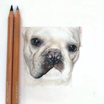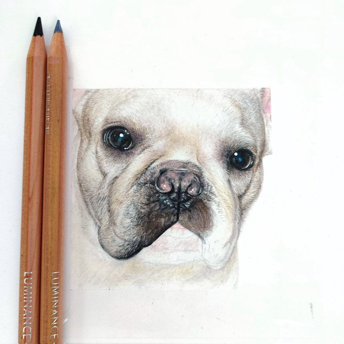 #色鉛筆画 ✏️オーダー 途中経過🐾 アップに写してみた😆💕 このお顔サイズは7~8㎝くらい💡 時間をかけて少しずつ…✏️ #犬 #フレブル #フレンチブルドック #羊毛ちくちく #羊毛ちくちくheartleaf #羊毛ちくちく瞳コレクション #絵描きさんと繫がりたい