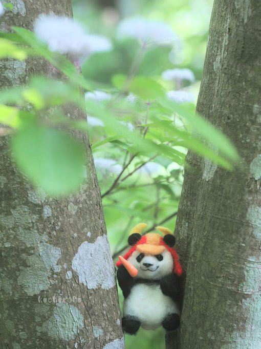 【再現パロディ】 もぅいいかい? まぁだだよ♪ また明日も遊んでね❤ #王子動物園 #ジャイアントパンダ #タンタン #羊毛タンタン№107 #羊毛フェルト twitter.com/kobeojizoo/sta…