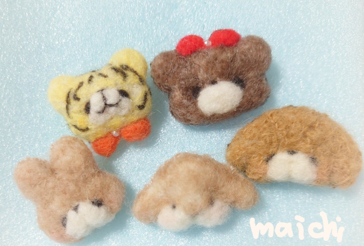 ブローチの仲間が増えました♡ minneで販売予定です✨ 🐯🐻🐰🐰🐶 #羊毛フェルト #ハンドメイド作品 #ハンドメイド #ハンドメイド好きさんとつながりたい #ハンドメイド好きな人と繋がりたい #ブローチ #羊毛フェルトアニマル
