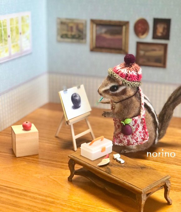 リーメントの「今日はデッサンの日」でシマリスちゃんにリンゴを鉛筆デッサンしてもらいました。 学生時代を思い出すなぁ。 練り消しや羽ぼうきもよく出来ていて 小さくて可愛いです💕 #羊毛フェルト #シマリス #norino #羊毛フェルトシマリス #chipmunk #リーメント #あの頃私とサクラクレパス