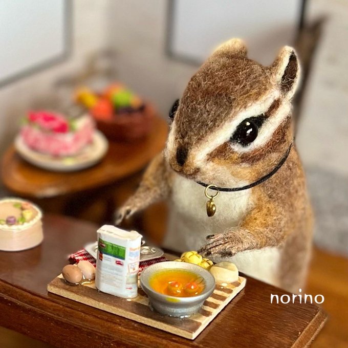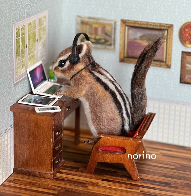 家事で忙しいシマリスちゃん。 今日はアイロンがけ。 しっかりシワを伸ばさなくちゃね。 #羊毛フェルト #ニードルフェルト #シマリス #羊毛フェルトシマリス #しまりす #小動物 #もふもふ #chipmunk #chipmunks #woolfelt #norino #needlefeltinganimals #needlefelting #リーメント