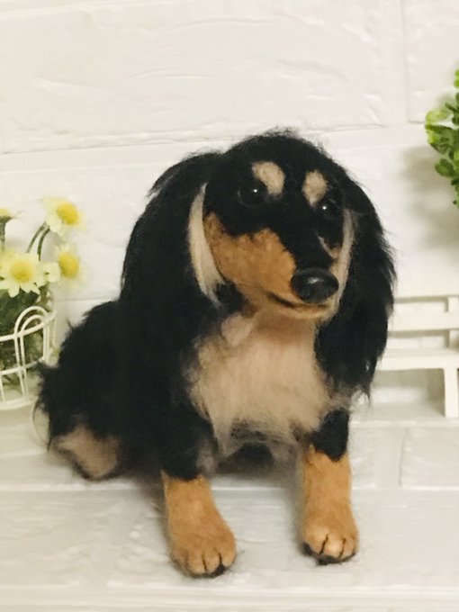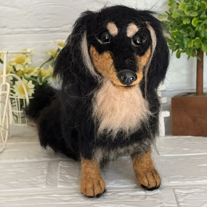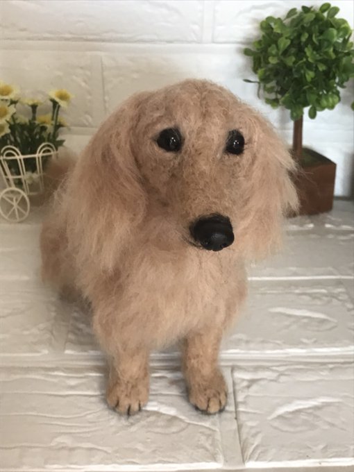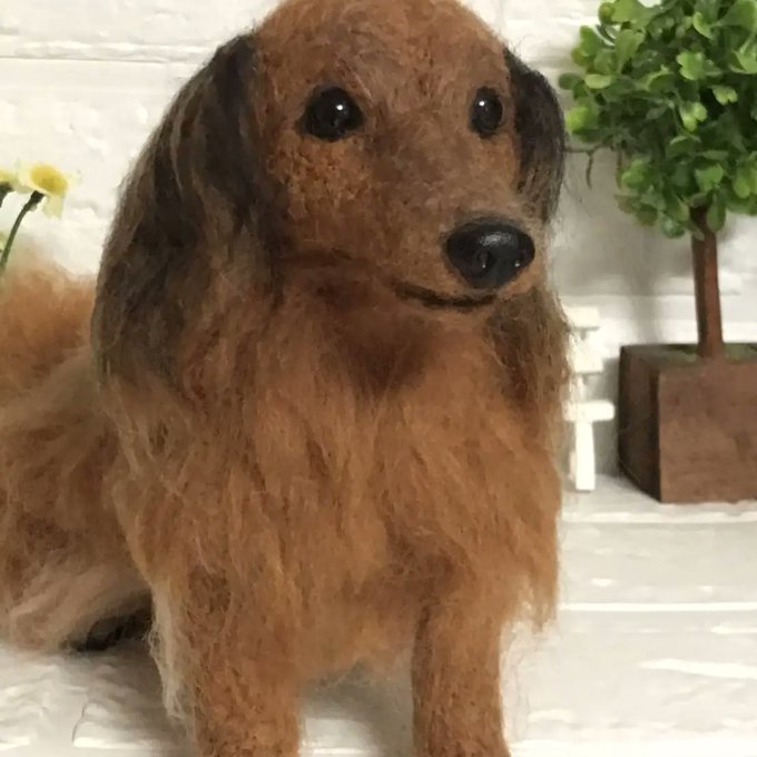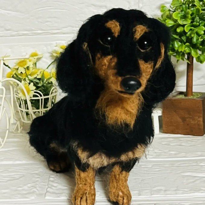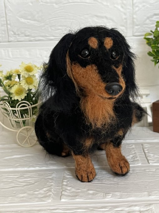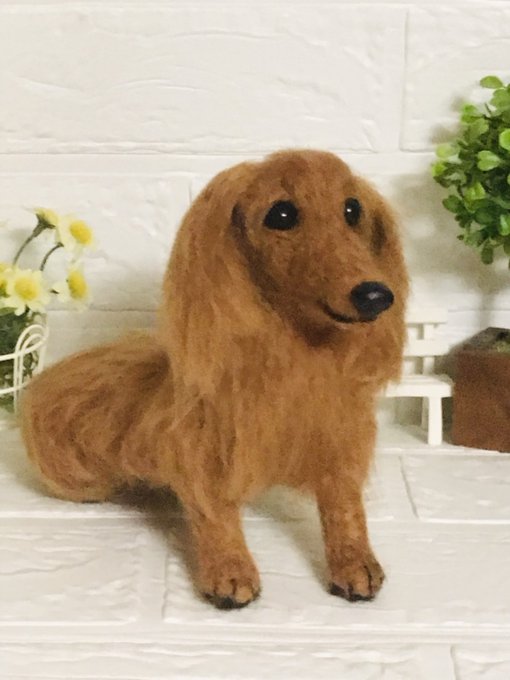 羊毛フェルト ミニチュアダックスフンドです。オーダーメイドで製作しました #羊毛フェルト #羊毛フェルト犬 #羊毛フェルトアシレイ #アシレイ #羊毛フェルトハンドメイド #羊毛フェルトダックス #羊毛フェルト犬 #ハンドメイド #ハンドメイド犬 #犬 #犬人形 #ダックス
