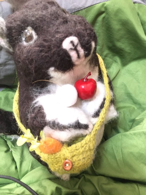 こんな可愛いチンチラちゃんのオーダーが来ました♪😍✨ ショルダーバッグには、羊毛のリンゴ🍎と人参🥕さん♬ 可愛い(^。^)♪💖 #羊毛フェルトオーダー #羊毛フェルトチンチラ #チンチラ #齧歯類