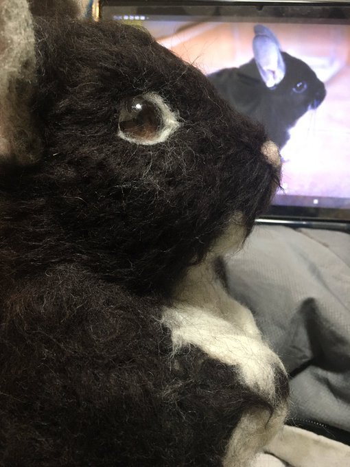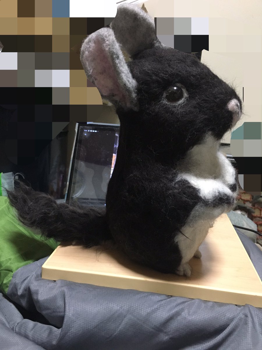 こんにちは✨ 羊毛クマちゃんの右目が角度によりブラウンの色が出ないので接着に問題ありまして、作り直しします💦 写真撮る時に気づきましたー😅 #羊毛フェルトオーダー #羊毛フェルトチンチラ #チンチラブラックパール