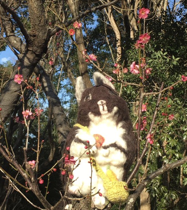今日は羊毛チンチラクマちゃんと梅のコラボ撮影にと出掛けたのですが、その際羊毛人参を🥕紛失したようで😅も一回さがしてなかったら作ります。ところで最強寒波とマスコミ騒いでましたが、そーでもない気が😅 恐怖煽るのもいい加減にしてほしい💧 #羊毛フェルトオーダー #羊毛フェルトチンチラ