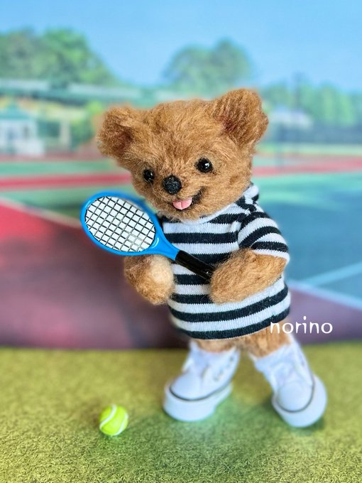 🧸🎾🧸🎾🧸 毎日暑いですねぇ😵 梅雨が早く明けたという事は 夏が長い?😥😥😥 今日のベアちゃんはテニス! でも熱中症にならないように 気を付けて〜〜💦 #羊毛フェルト #羊毛フェルトテディベア #テディベア #ベア #needlefelting #teddybear #テニス #norino #羊毛フェルト作品 #羊毛毡
