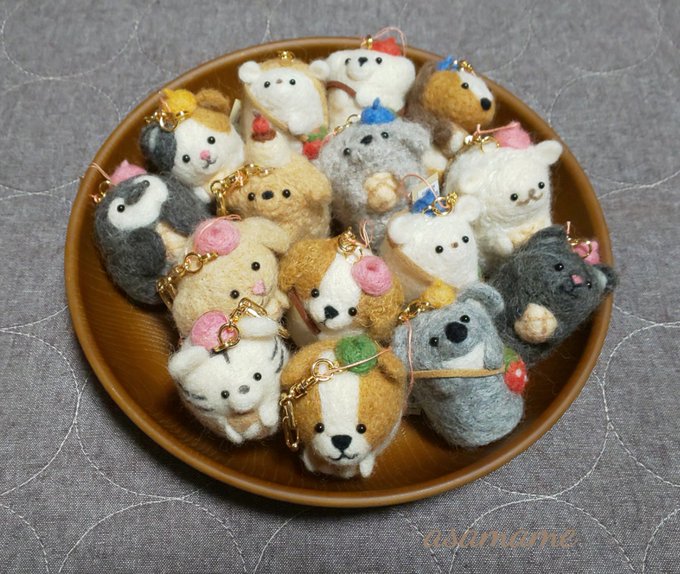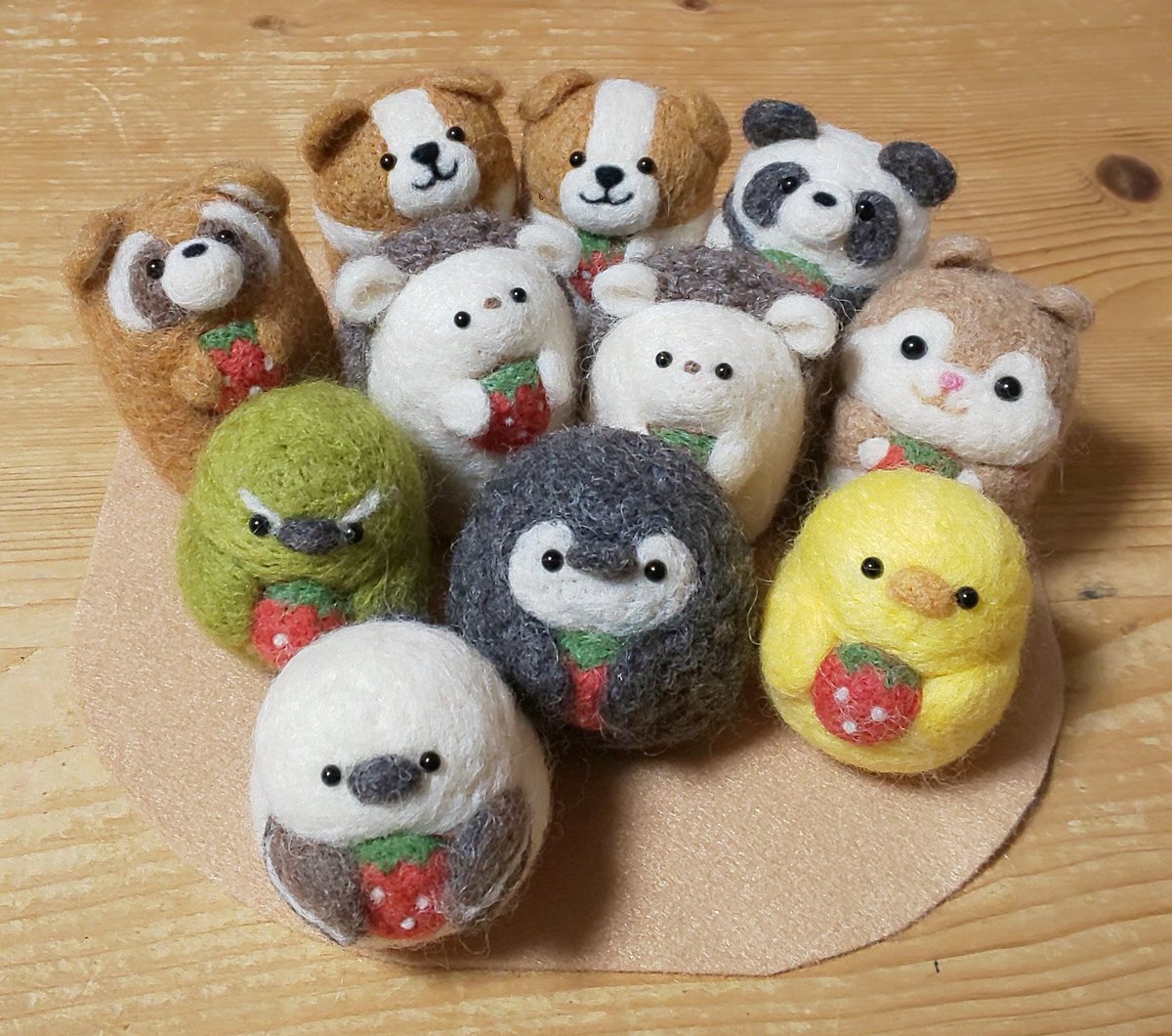 イチゴの飾り付けが出来ました☺️ 新規委託販売先に納品します❗️ ハンドメイドマルシェ 河原町OPA店 9/27から10/13 久しぶりの京都で、私の作品達が並びます✨ よろしくお願いいたします🙇♀️ #ハンドメイド #羊毛フェルト #ぬい撮り #羊毛フェルトマスコット #needlefelt