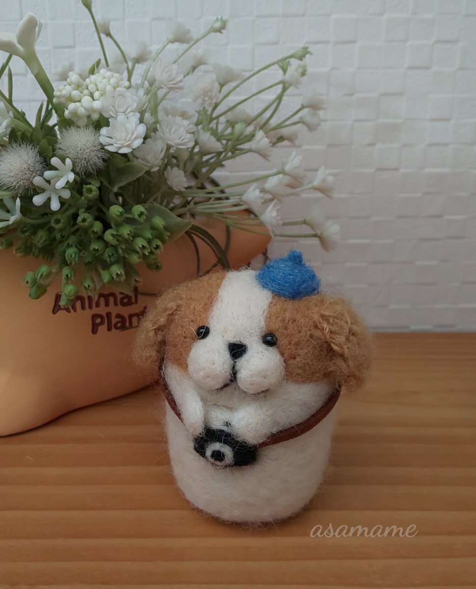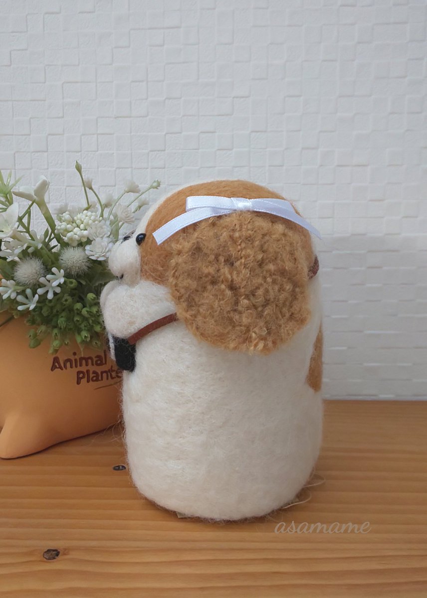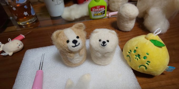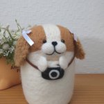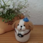 レモンたんが見守ってくれてます🥰 来月から始まる委託販売先用の新作たちです🎵 #ロングコートチワワ さんと #マルチーズ さんです😊 2匹とも植毛して、モフモフしてます✨ ハンドメイドマルシェ ルミネ立川店 2/6から2/28 #しろたん #羊毛フェルト #犬 #羊毛フェルトマスコット