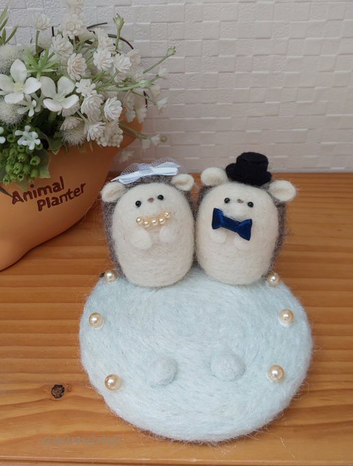 オーダー品のリングピローが完成しました🎵 本日、発送いたします😊💨💨 ご購入ありがとうございました🙇♀️ #羊毛フェルト #羊毛フェルトマスコット #リングピロー #ハリネズミ #はりねずみ #ハリネズミのいる暮らし