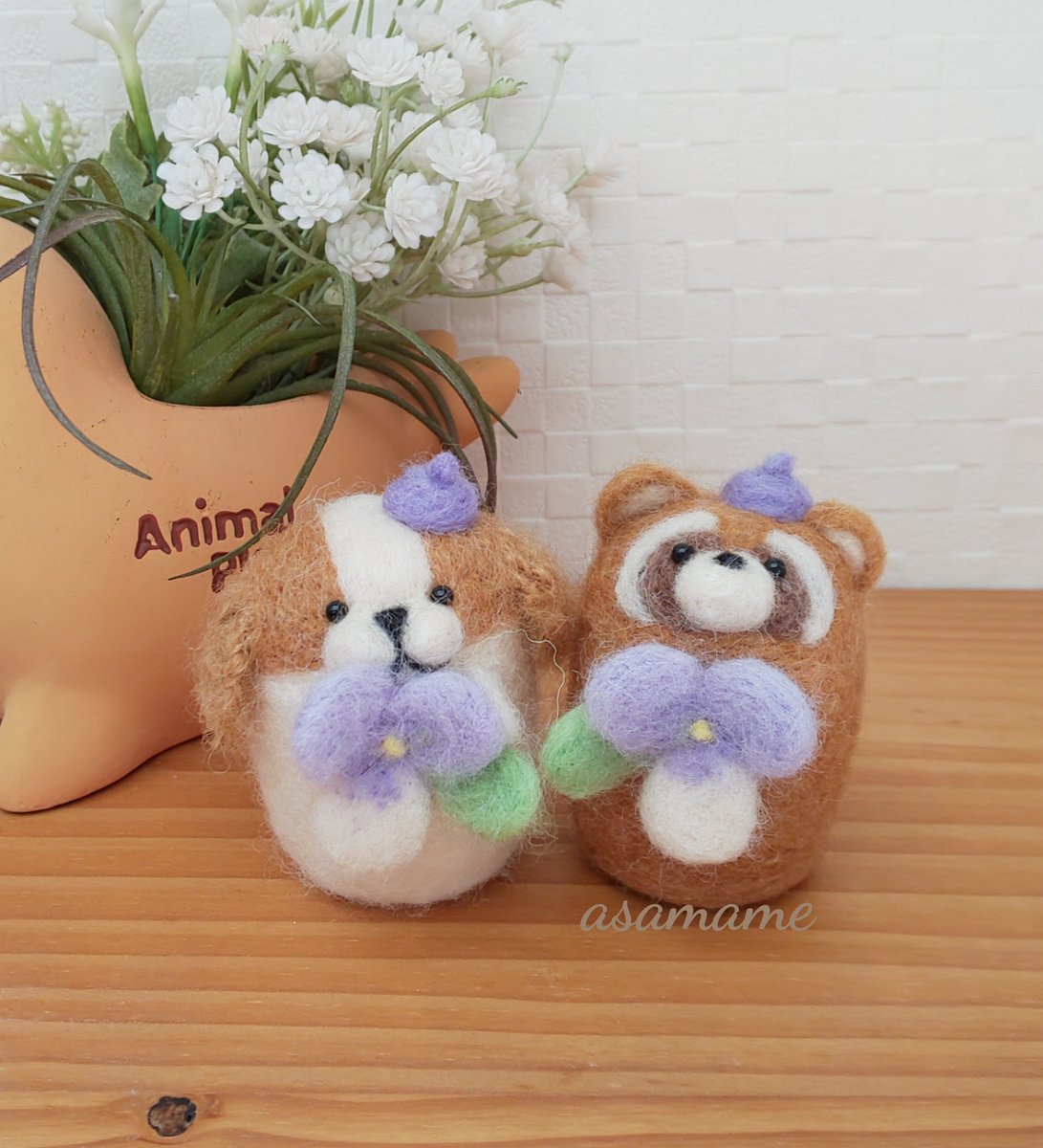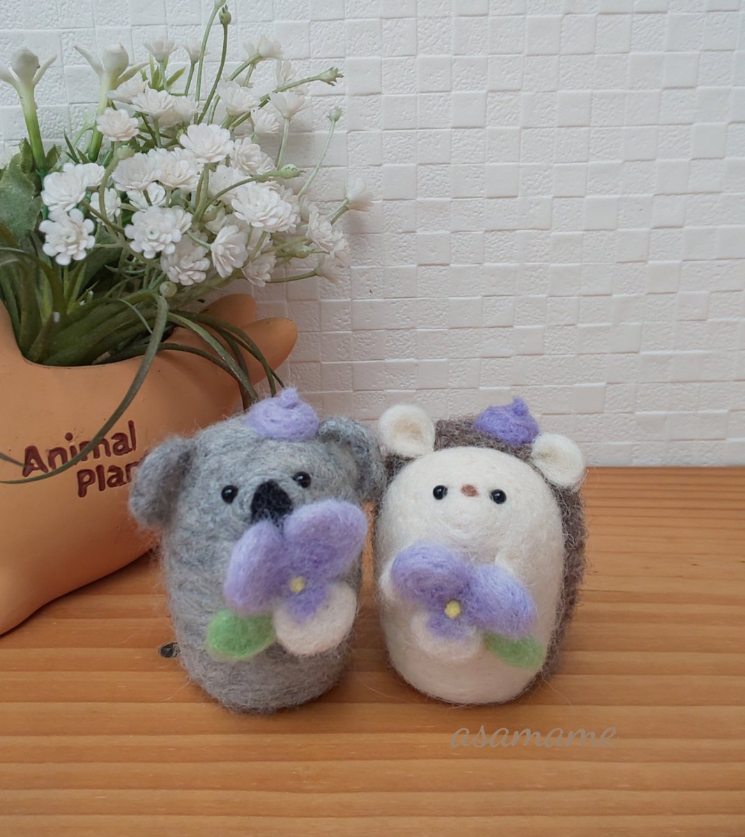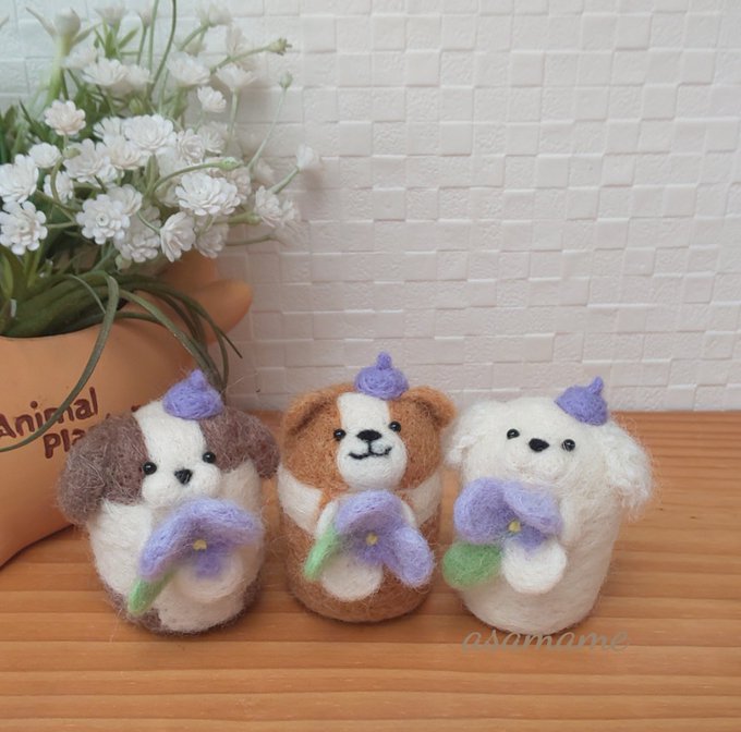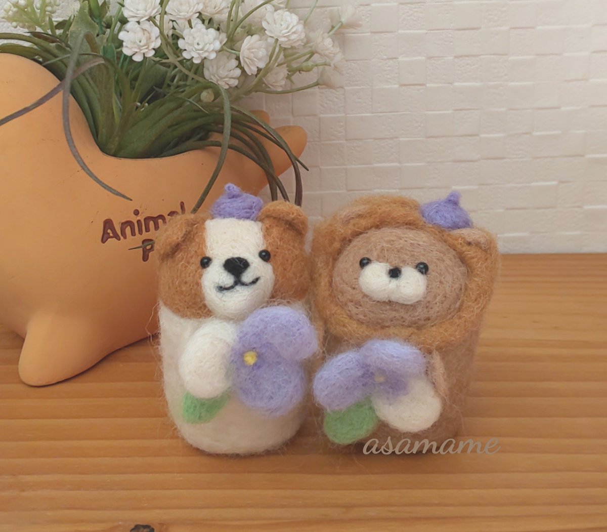 こちら受注制作となりますが、minneとcreemaに掲載しました✨ 是非ご覧くださいませ🎵 新作のビオラを摘んできたシリーズです🥰 minne.com/@asamame ※creemaはトップページにURLあります‼️ #ハンドメイド #羊毛フェルト #ぬい撮り #ビオラ #羊毛フェルトマスコット #キーホルダー