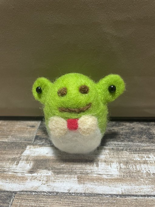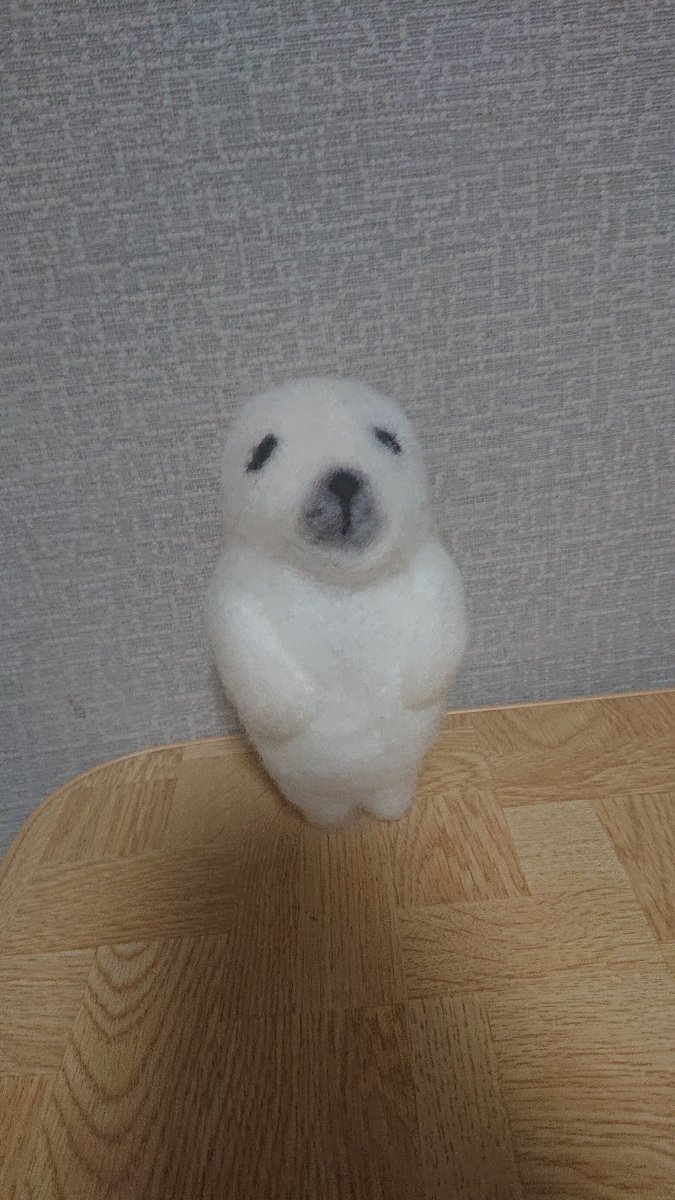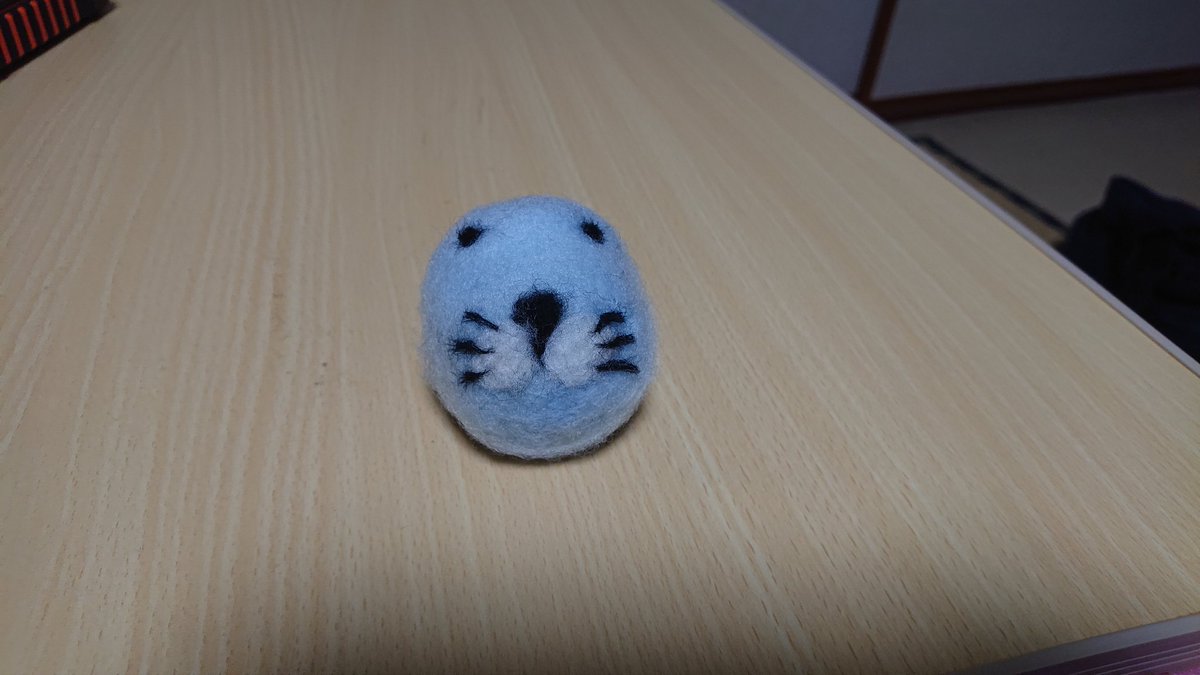 今日の羊毛フェルト ちょっとショボンな顔に (´・ω・`) アモアスver作ろうとしたけどサイズが微妙になった #羊毛フェルト #羊毛フェルト初心者 #ハンドメイド好きさんとつながりたい #dbd
