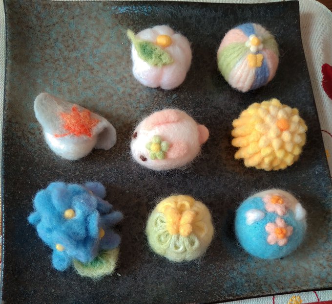 羊毛フェルトの和菓子です(・∀・) 一時期、和菓子職人の霊でも取り憑いたと思う程無性に作りたくなりましたw #羊毛フェルト #和菓子 #羊毛フェルト和菓子 #ハンドメイド好きさんと繋がりたい