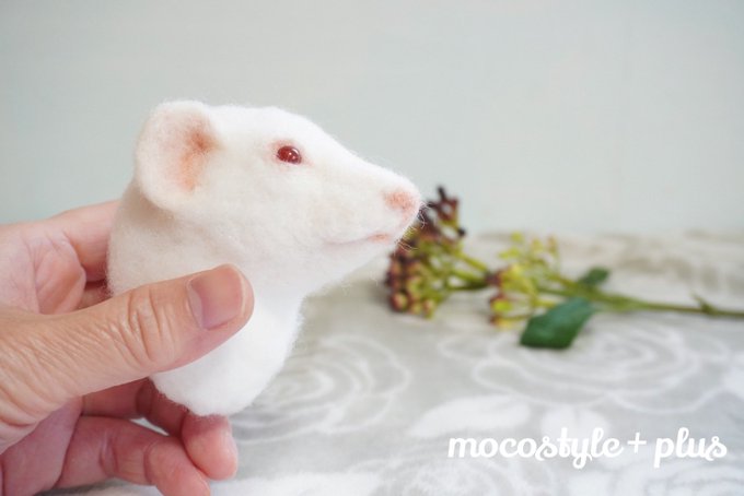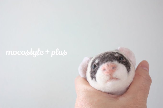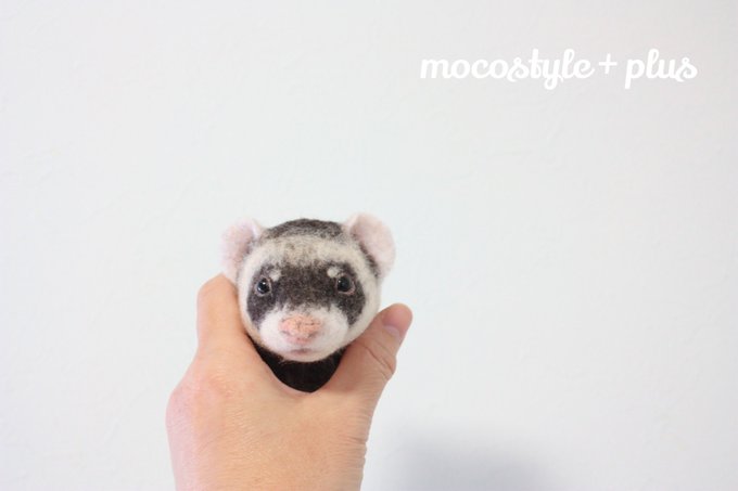 きのうのお顔から黒い模様を微調整。 顔の形も微調整。 だいぶ引き締まったし、可愛くなった♡ #羊毛フェルト #羊毛フェレット #フェレット #フェレットぬいぐるみ #ferret #ペット #うちの子オーダー #オーダーメイド #にぎにぎフェレット #羊毛フェルト作家 #モコスタイルプラス