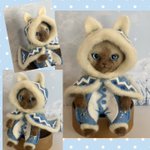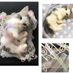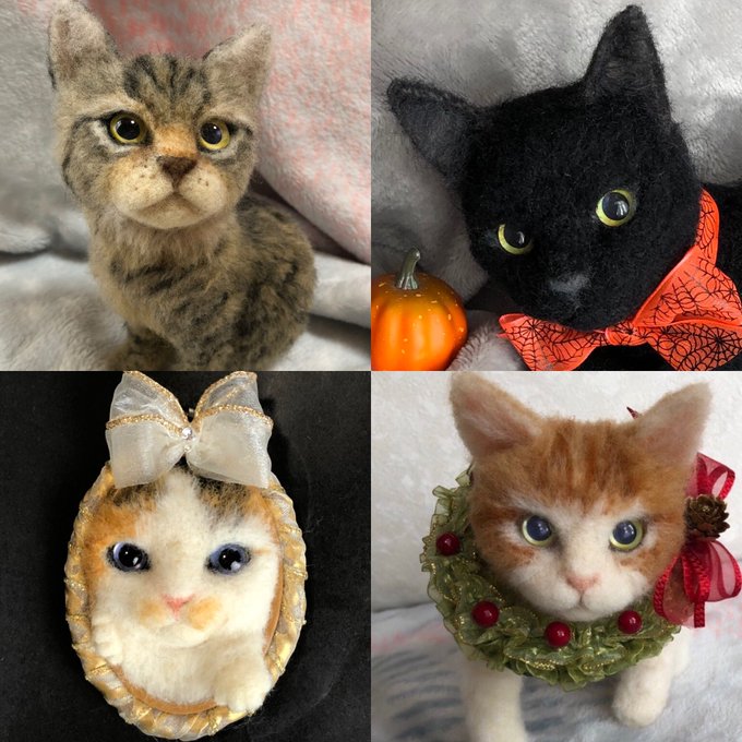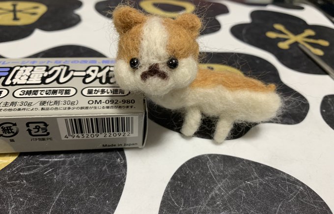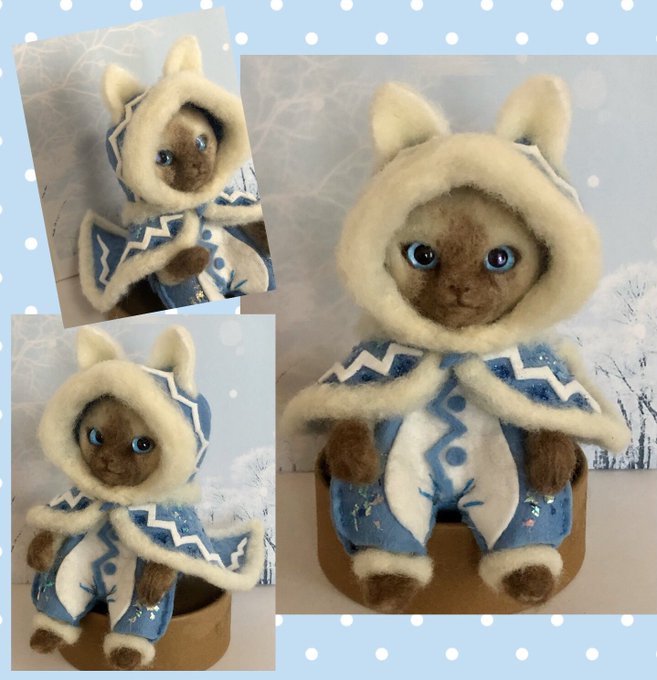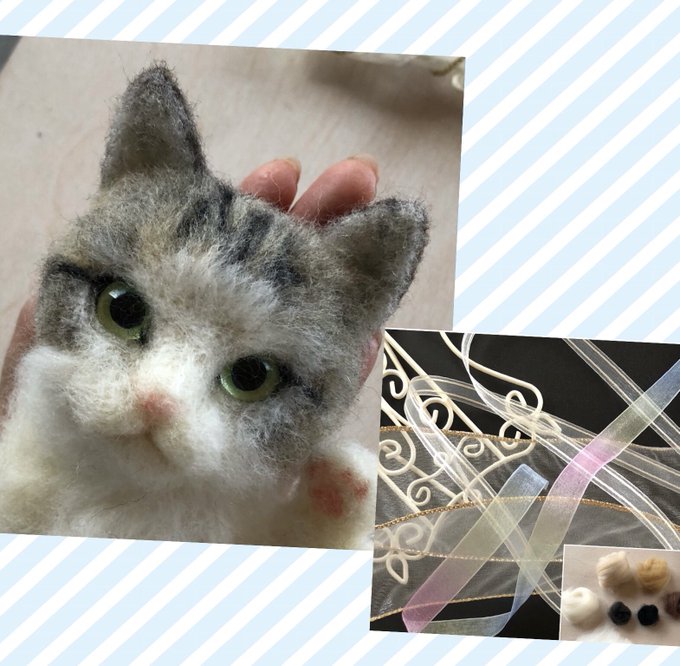 ゲーム#モンハンのオトモアイルー装備(2枚目)が可愛くて😻作り始めました。座らせて、服を着せます。この素材を使って、ここにはこれで…色々考える時間がすっごく楽しい❣️ #羊毛フェルト #羊毛フエルト #モンスターハンター #MonsterHunter #アイルー