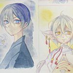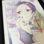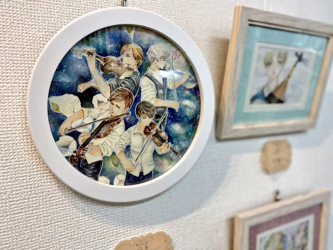 美少年展の最終日です。 いただいた画像を貼らせて頂きます 【協奏】 はじめての丸額に挑戦させていただきました。 楽器等も初描きですので 見てもらえると嬉しいです☺️ 本日も宜しくお願い致します🍀 #美少年展 twitter.com/mk_tenji/statu…