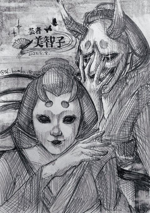なんとなく描きたくなって描いた 落書きの美智子さん🪭 #芸者 #美智子 #第五人格 #第五人格イラスト #IdentityV #IdentityVイラスト #illustration #イラスト