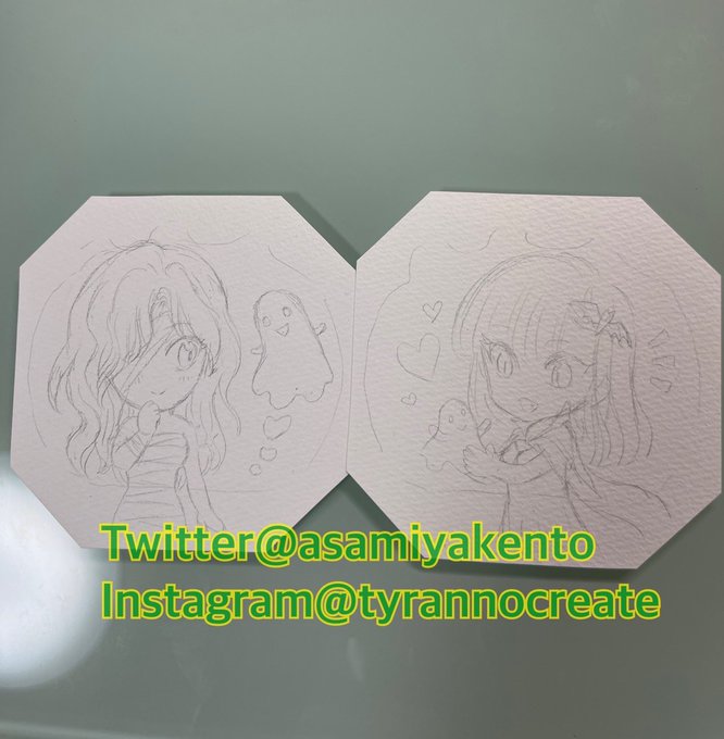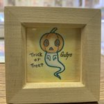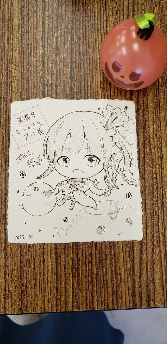 #美濃市ビジュアルアート展 #ブイミノ 🎃美濃市健康文化交流センター ハロウィンのミニイラスト描きました‼️パンプキンの額に入れて持って行きます🎃 売約済みの色紙も完成しました✨ 最終日🔥美濃市を満喫しましょう~🐓✨