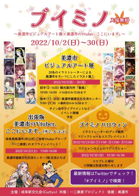 今週末で #ブイミノ 終わってしまうということで、28日(金)も午後から在廊します。 29日(土)は在廊する人がいないのでご注意ください! そして30日(日)はコスプレ入場可のハロウィンイベントです!🎃 #美濃市ビジュアルアート展 #コスプレ