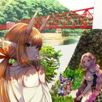 一二美家3人描かせていただいたときのイラスト上げ!その2! 岐阜県美濃市の美濃橋のある風景と一緒に一二美家っ!✨#美濃市ビジュアルアート展 #ブイミノ の時にコラボさせていただきました☺️✨