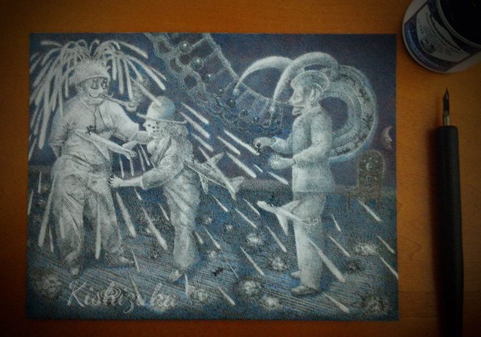 『Exploiting Meteor (搾取する流星)』 140×180(mm)/アルシュ紙にインク 付けペンによる点描/2023年制作 #art #artwork #美術ネットワーク #芸術の輪 #今月描いた絵を晒そう #絵柄が好みっていう人にフォローされたい