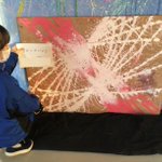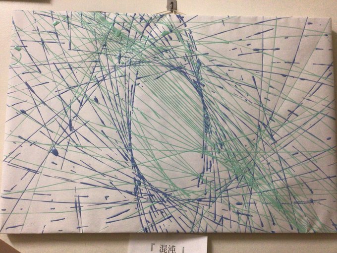 イラスト美術部、ペンデュラムアート。今回の作業で完成させた4点。すごい良い作品ができました。 上段は左から「混沌」、「思考」 下段は左から「ビッグバン」、「爆破」 #日星高校 #美術部 #PendulumPainting #ペンデュラムアート